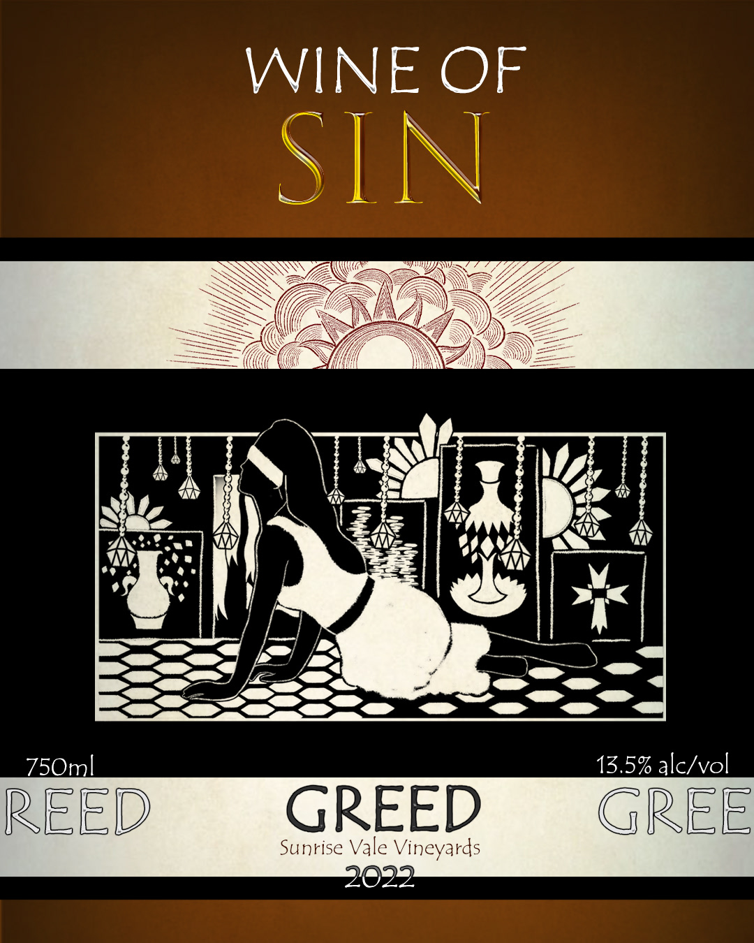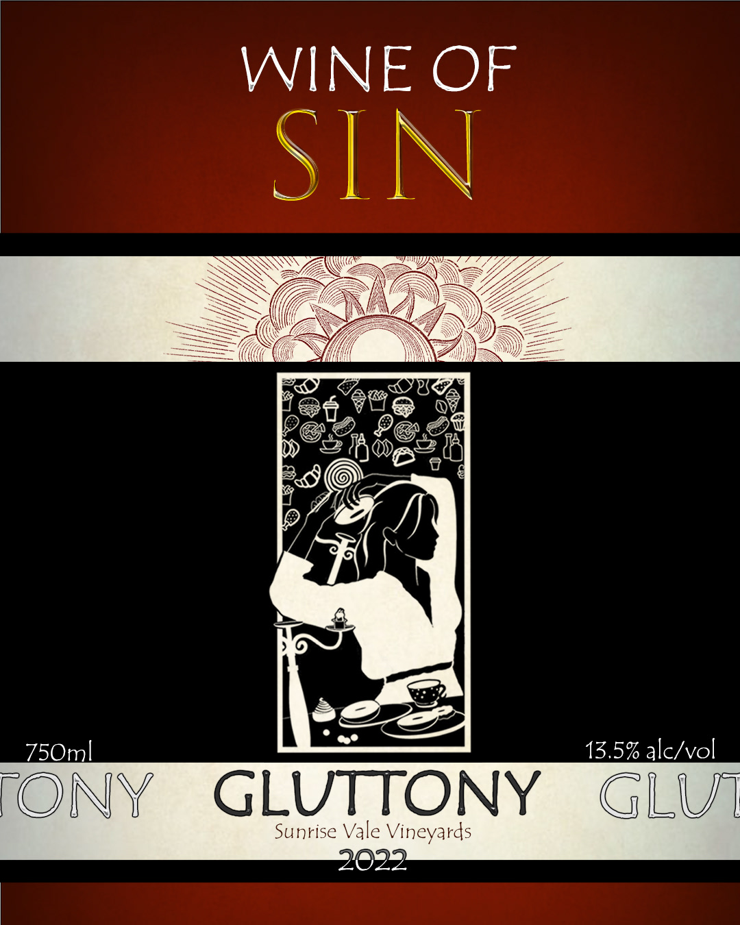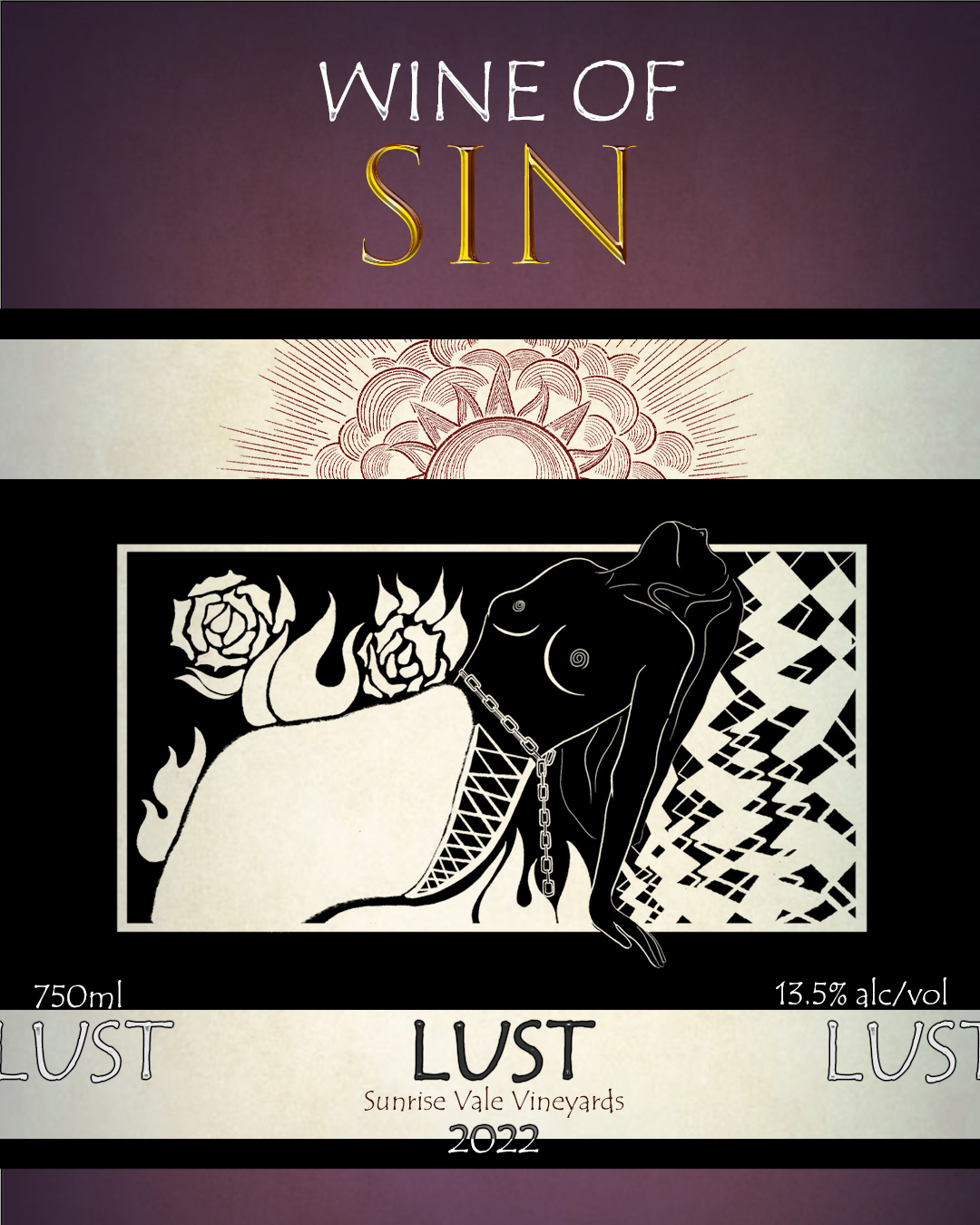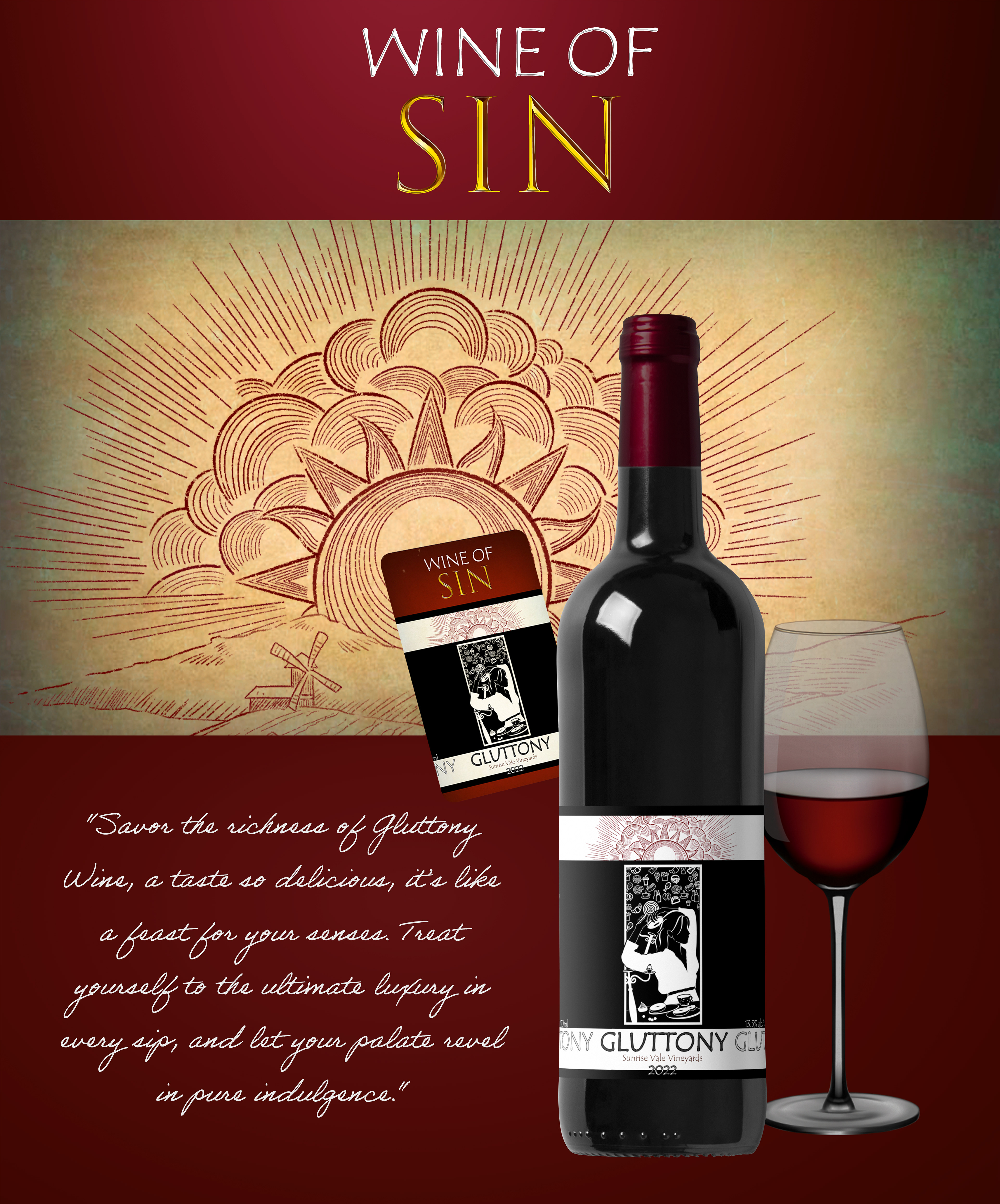 Introducing Wine of Sin, a collection of wines inspired by six of the seven deadly sins. Each bottle, with a minimalistic design of a logo of Sunrise Vale Vineyards, offers a modern, black-and-white design tailored for the taste of a younger generation of female consumers.