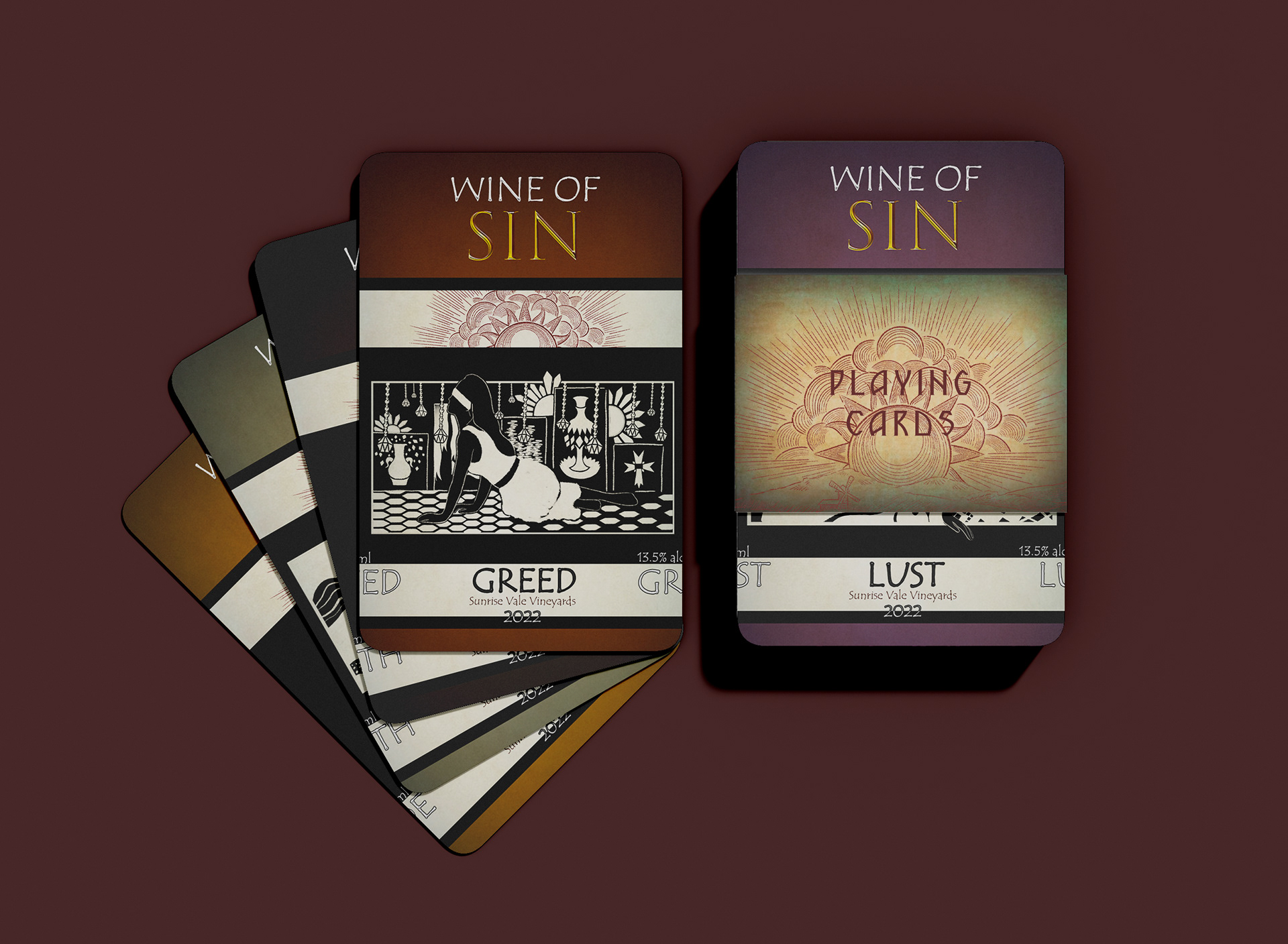Introducing the perfect complement to an indulgent evening with Wine of Sin - a set of playing cards that mirror the essence of this sinful collection.
